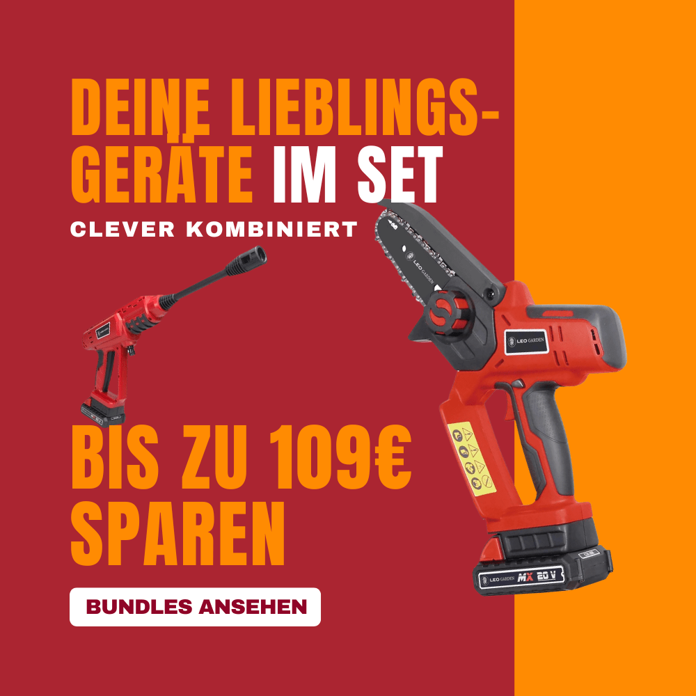 LEO Garden bietet Gartengeräte mit einer Garantie von 2 Jahren an. Dank langlebiger Akkus kannst du dich auf zuverlässige Arbeitsleistung verlassen, auch bei größeren Gartenprojekten.